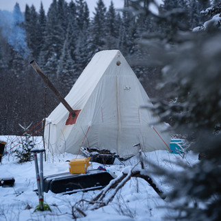 We used Gavin's hot tent as out 'dining room' and our hot tent as sleeping quarters for everyone. We can only fit our people in our tent without the wood stove, which meant that there was a lot of condensation in the mornings - we didn't have a way to dry things out. Fortunately we have very warm sleeping bags, but I wasn't a fan of the wetness everywhere. Combined with the cold...it's just a no from me. A manageable no.