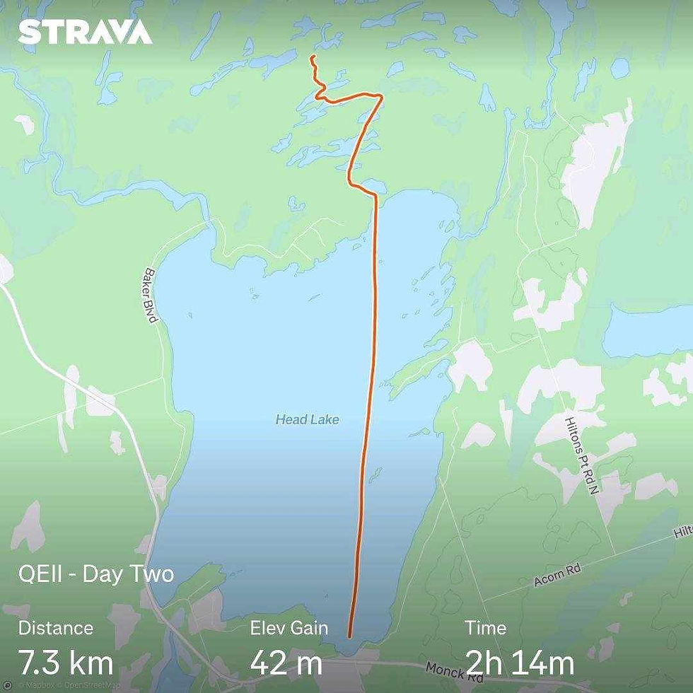 Beautiful, sunny weather for our initial crossing of Head Lake (spoiler - our return was not so pleasant, so bless the sunshine while we had it).